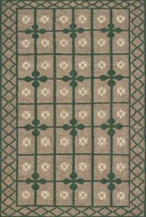 Handwoven Wool Area Rug: Green Beige Geometric Floral