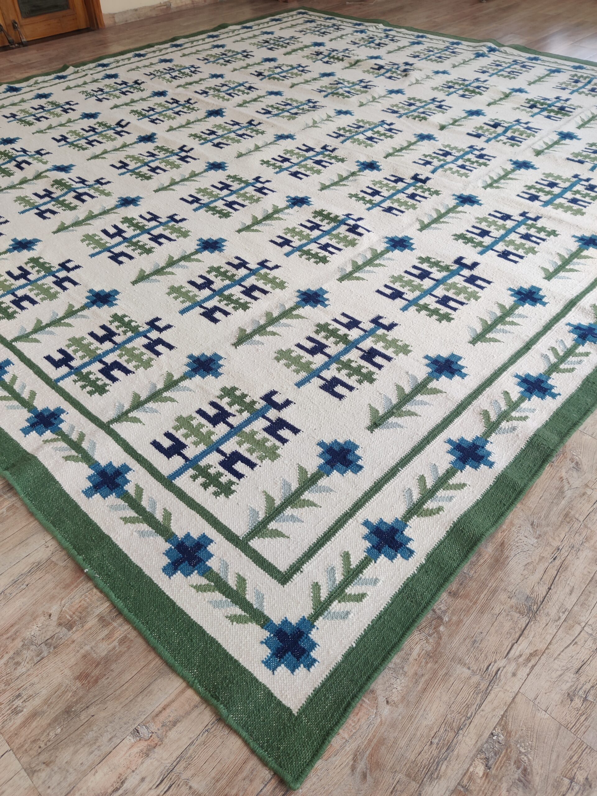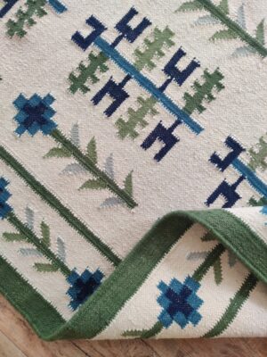 Green And White Cotton Flat Weave Rug Runner