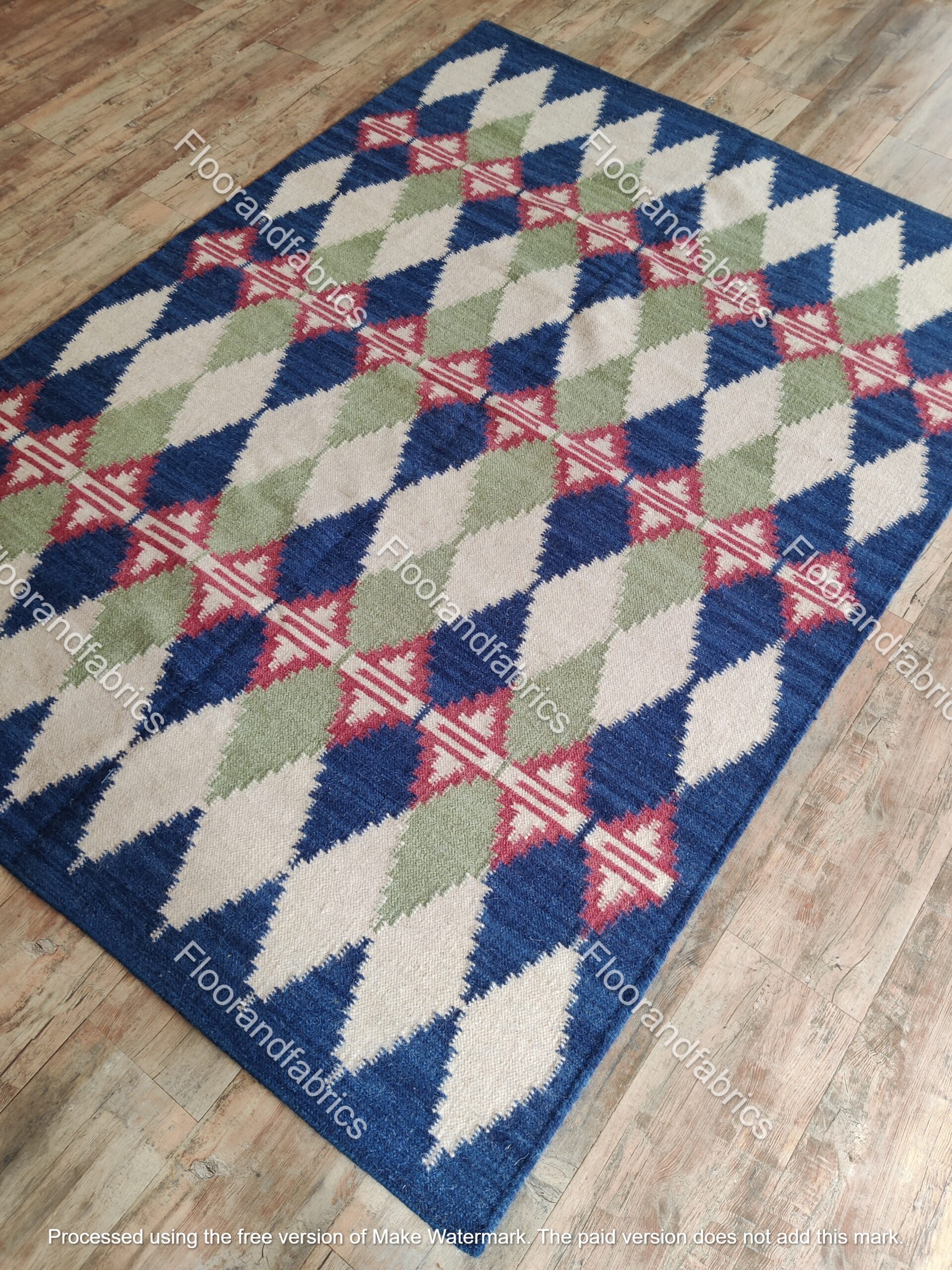 Geometric Pattern Indigo Cotton Printed Rug