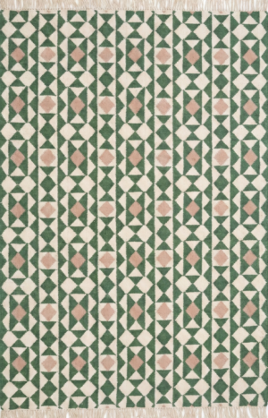 Handmade Cotton Wool Traditional Designer Rug, Modern Vintage Green And White Home Decor Rug