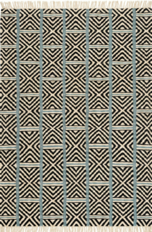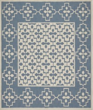 Blue Cotton Wool Dhurrie Rug: Handwoven Geometric Flatweave 6×9