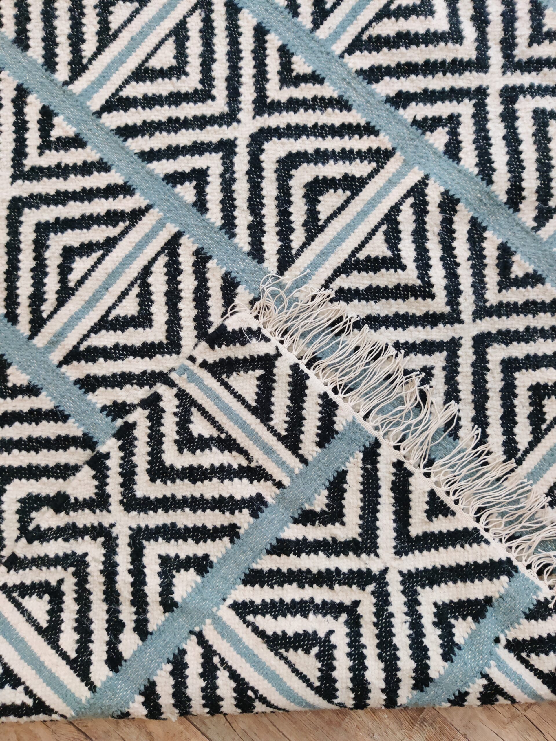 Blue And Black Cotton Wool Kilim Rug, Home And Living Room, Home Decor Rug