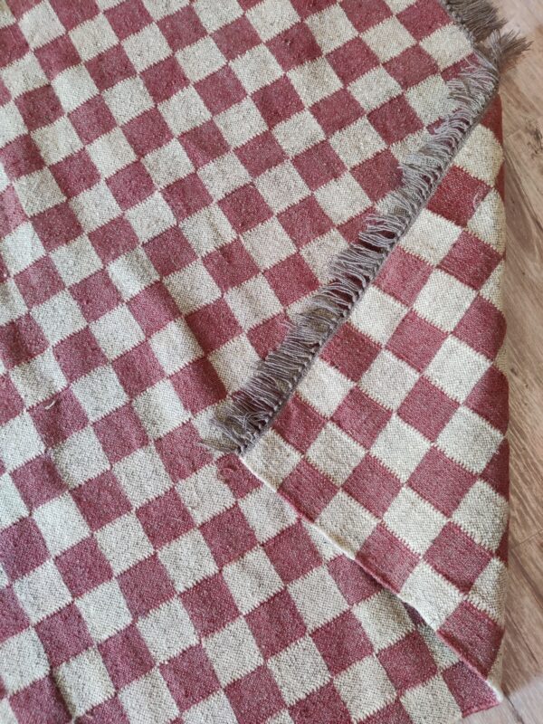 Handmade Beige And Pink Checkered Rug, Home And Living Room Rug, Wool Kilim Check Rug, Bedroom Rug