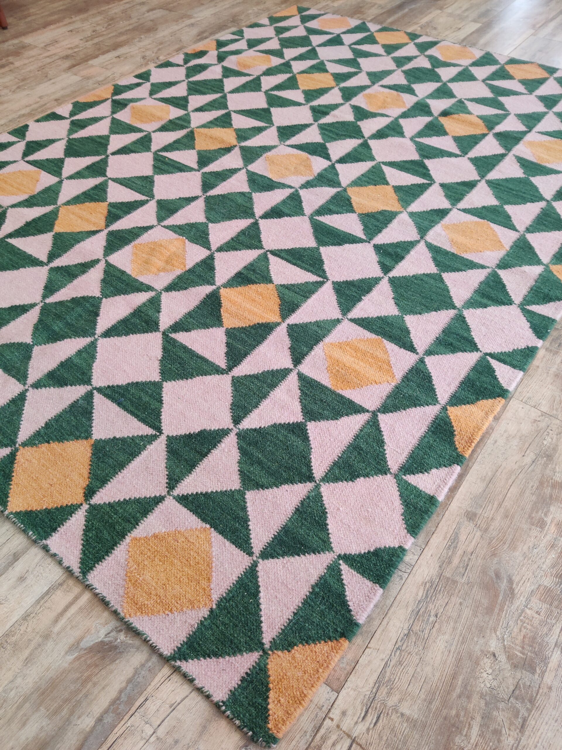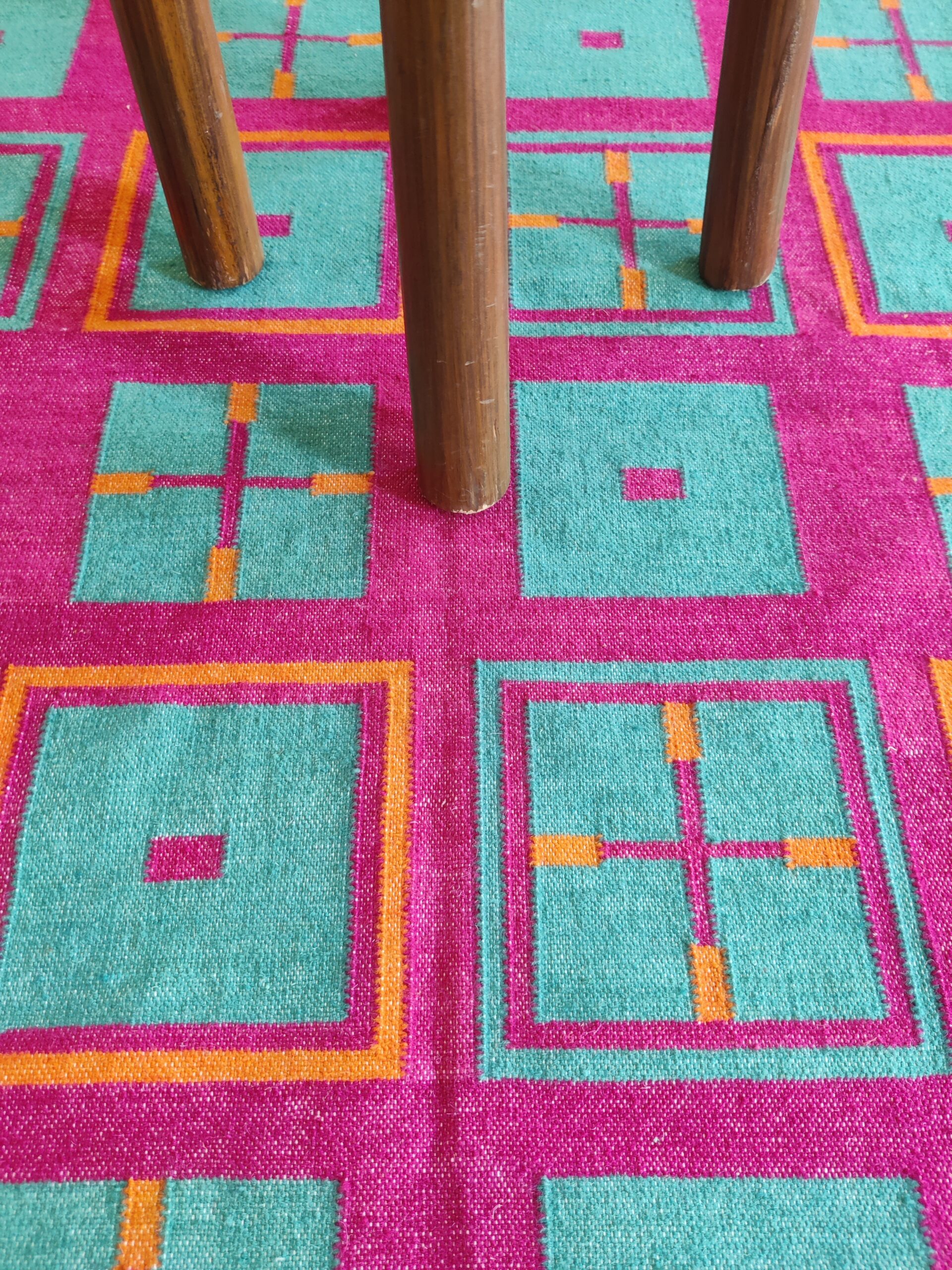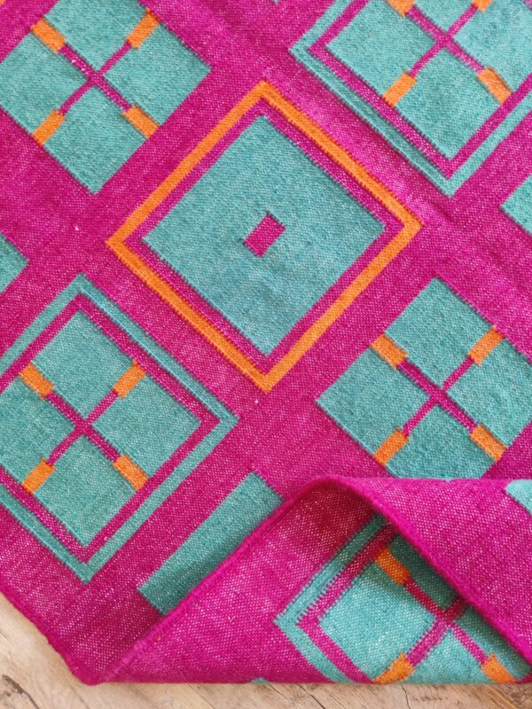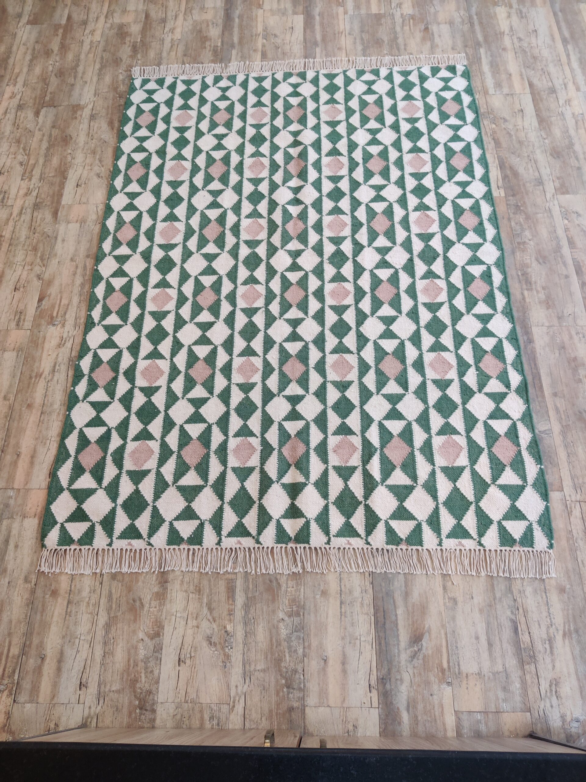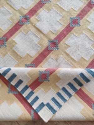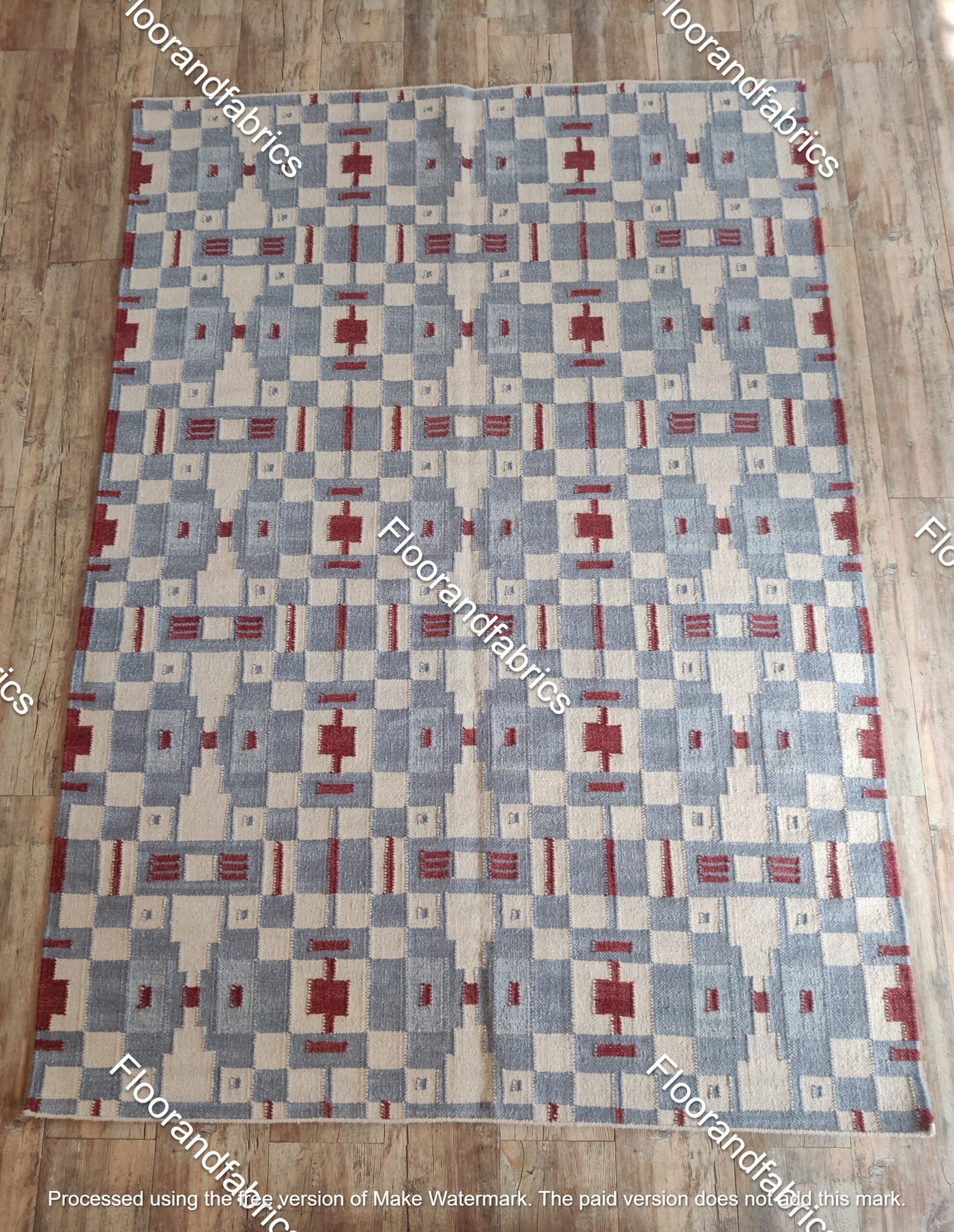 Handmade Cotton Wool Rug, Modern Designer Pattern Wool Kilim Rug, Coustom Size Reversible Rug