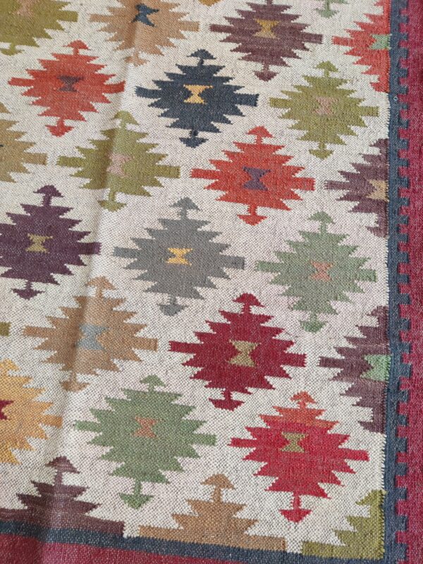 Handmade Geometric Multicolor Wool Jute Rug, Jute Kilim Modern Hallway, Bedroom Rug