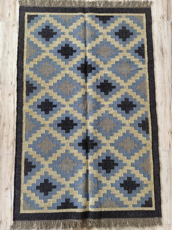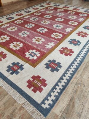 Handmade Cotton Wool Rug, Modern Geometric Pattern Wool Kilim Rug, Living RooM, Bedroom Rug