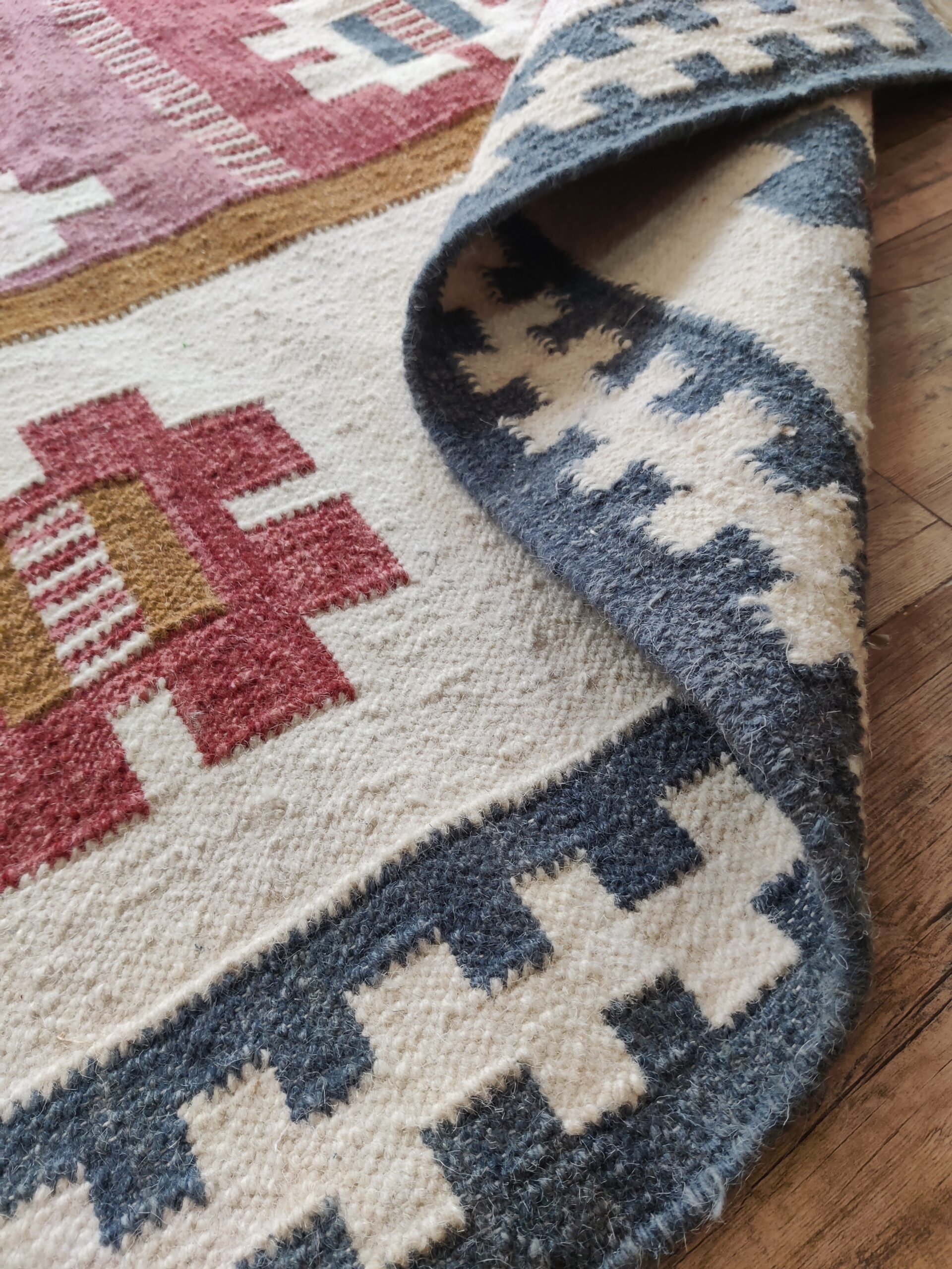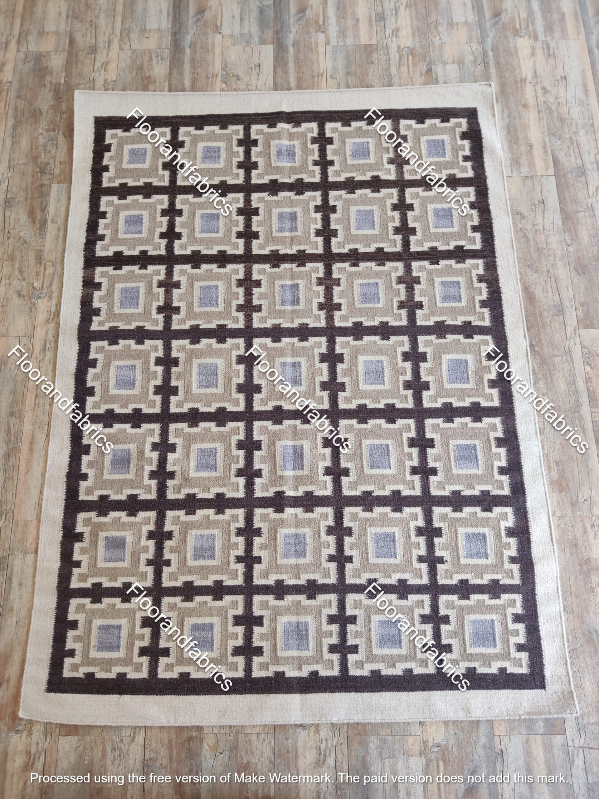 Handmade Cotton Wool Rug, Modern Vintage Designer Pattern Wool Kilim Rug
