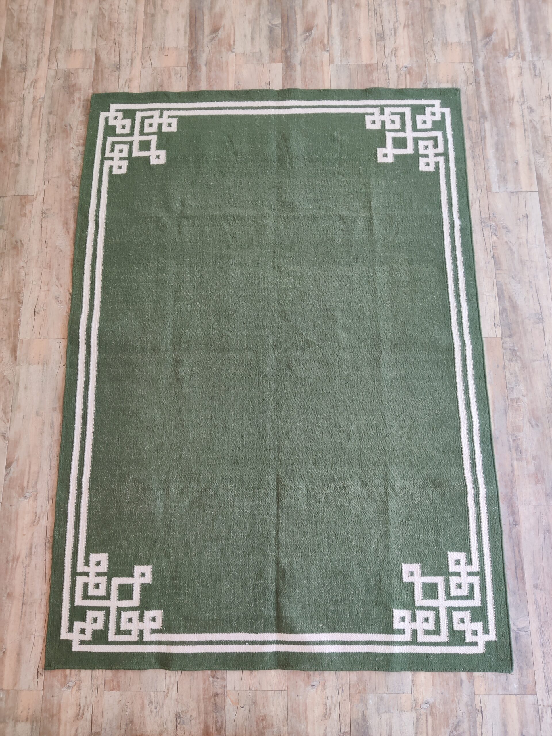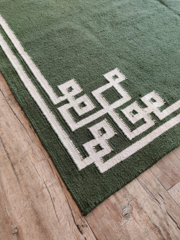 Handmade Cotton Wool Traditional Designer Rug, Modern Vintage Green And White Home Decor Rug