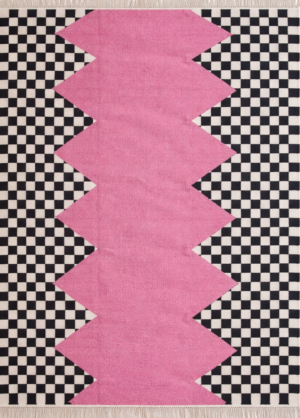 Handwoven Checkered Pattern Pink And Black Home And Living Room Rug, Modern Desinger Rug
