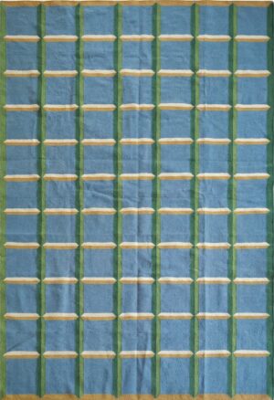 Handwoven Checkered Pattern Green And Blue Home And Living Room Rug, Modern Desinger Rug