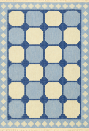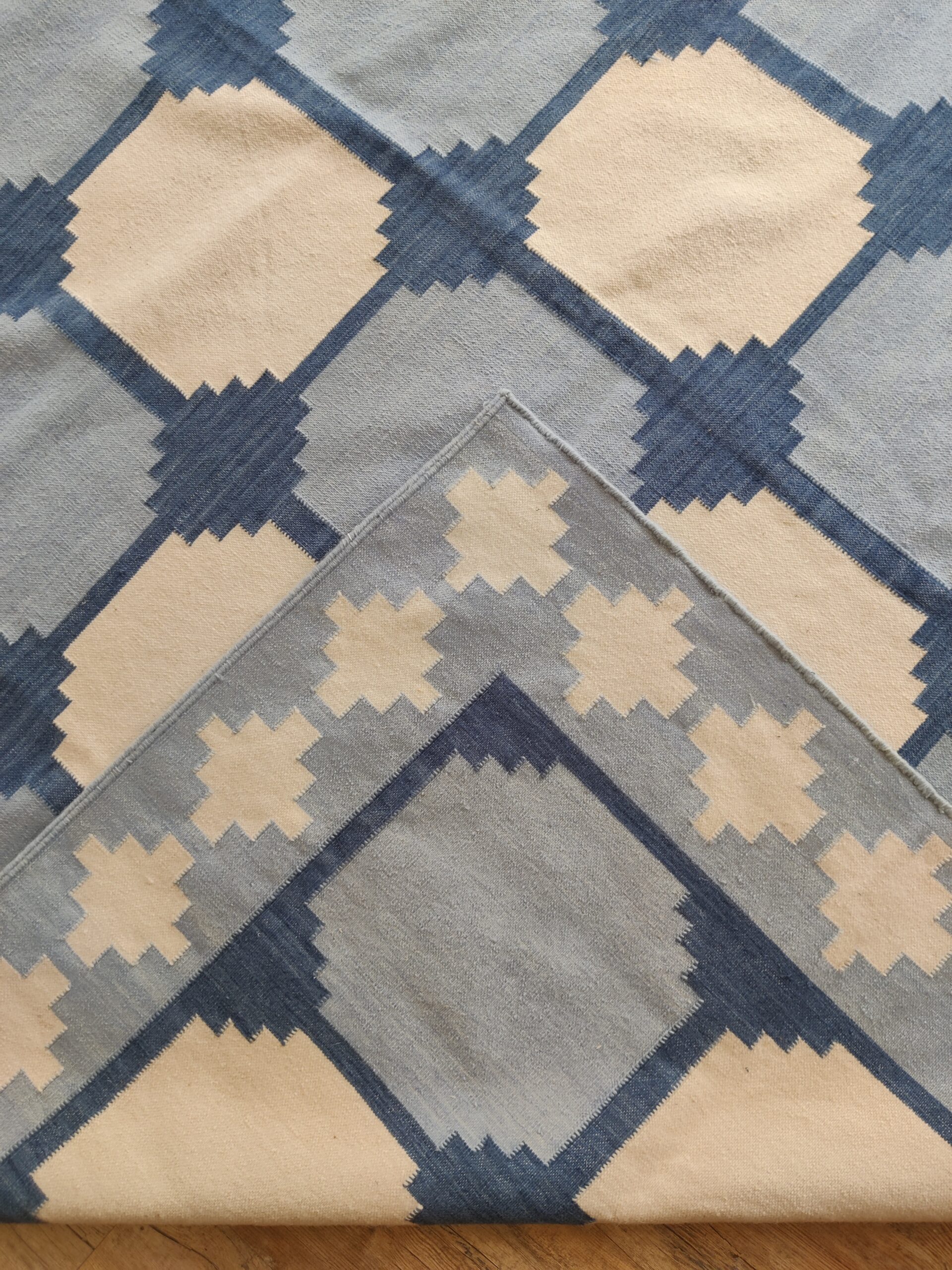 Handwoven Blue and White Geometric Cotton Rug – Modern Flatweave Rug