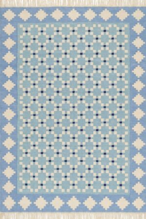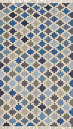 Handwoven Cotton Dhurrie Rug: Blue and White Star Geometric Flatweave Rug