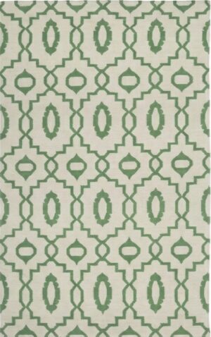 Handwoven Cotton Dhurrie Rug: Green & White Geometric Flatweave, 8×10