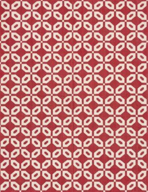 Handwoven Cotton Dhurrie Rug: Red and White Geometric Flatweave Rug
