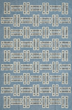 Handwoven Cotton Wool Geometric Pattern Rug, Modern Designer Rug, Blue And White Rug