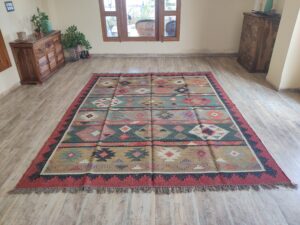 Handwoven Colorful Wool Jute Kilim Rug, Home Decor Rug