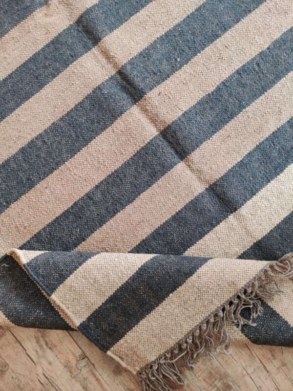 Handwoven Blue And Beige Strips Wool Jute Rug, Home And Living Room Rug