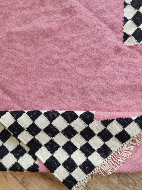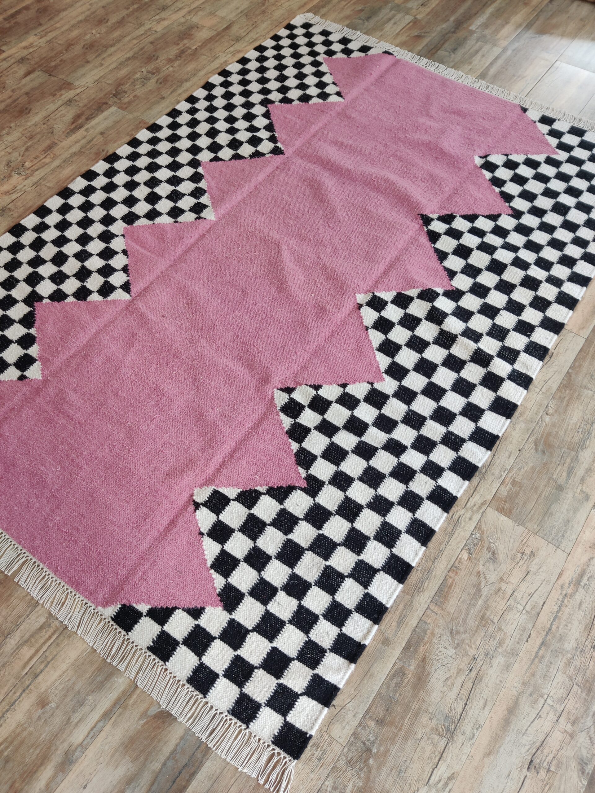 Handwoven Checkered Pattern Pink And Black Home And Living Room Rug, Modern Desinger Rug