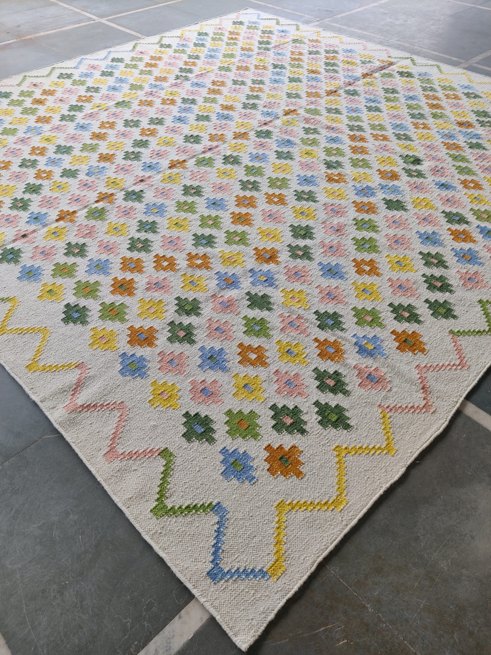 Handwoven Colourful Checkered Home Decor Rug, Wool Jute Rug, Home And Living Room Jute Kilim Rug