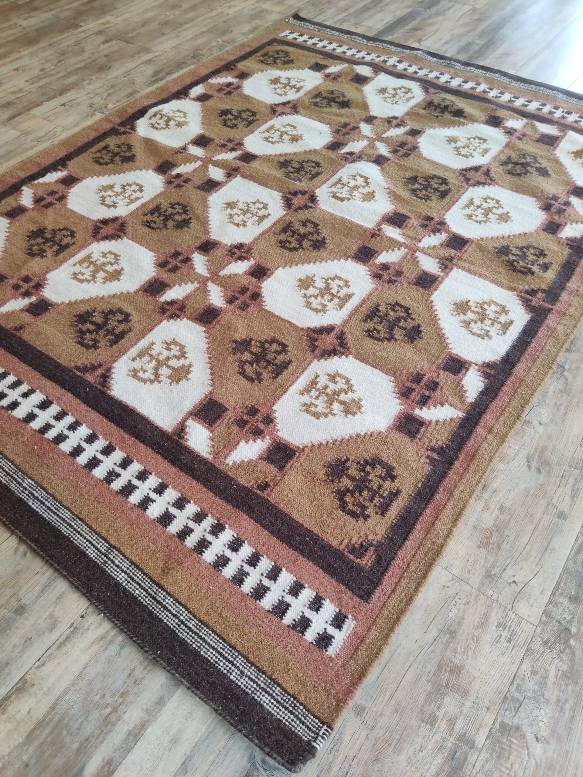 Handwoven Brown And White Geometric Pattern Rug, Cotton Wool Rug, Home Decor Rug