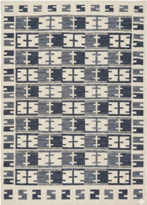 Handwoven Blue and White Geometric Cotton Rug – Modern Flatweave Rug