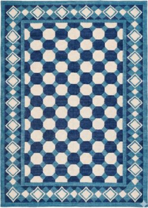 Handwoven Blue And White Geometric Pattern Home And Living Room Cotton Wool Rug, Reversible Rug