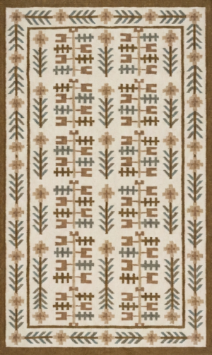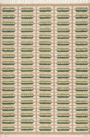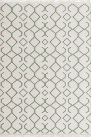 Handwoven Cotton Wool Rug: Beige & Sage Green Geometric Flatweave