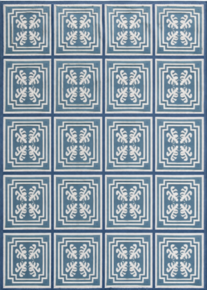 Handwoven Cotton Wool Rug: Blue & White Geometric Dhurrie – 9×12 Ft, Modern Flatweave Area Carpet