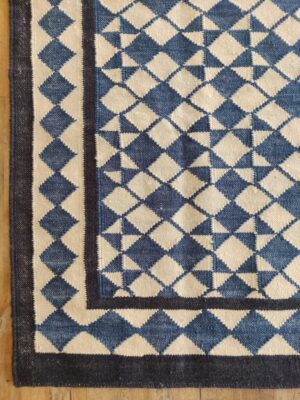 Handwoven Cotton Dhurrie Rug: Blue and White Star Geometric Flatweave Rug