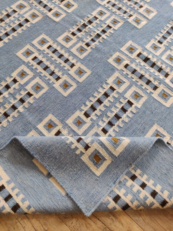 Handwoven Cotton Flatweave Rug, Blue Tribal Geometric Boho Style Rug