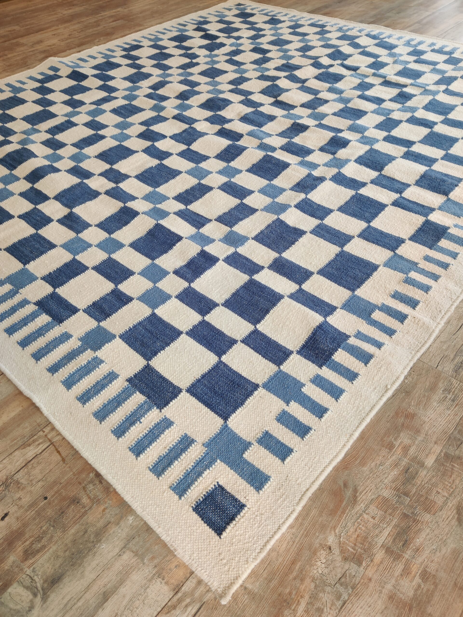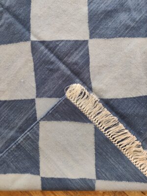 Handwoven Cotton Wool Rug, Home Decor Rug, Blue And White Checkered Rug Living Room, Bedroom Rug