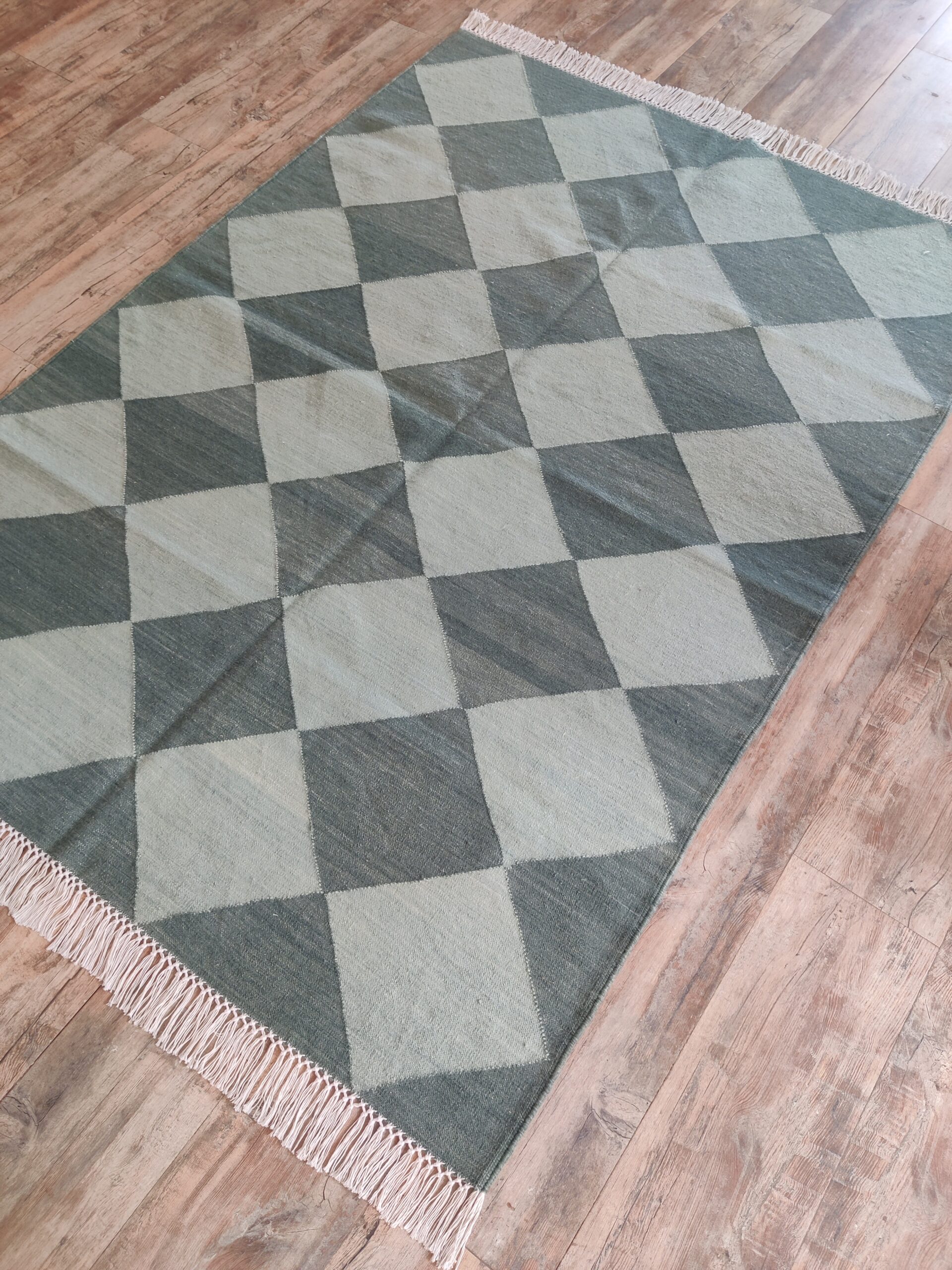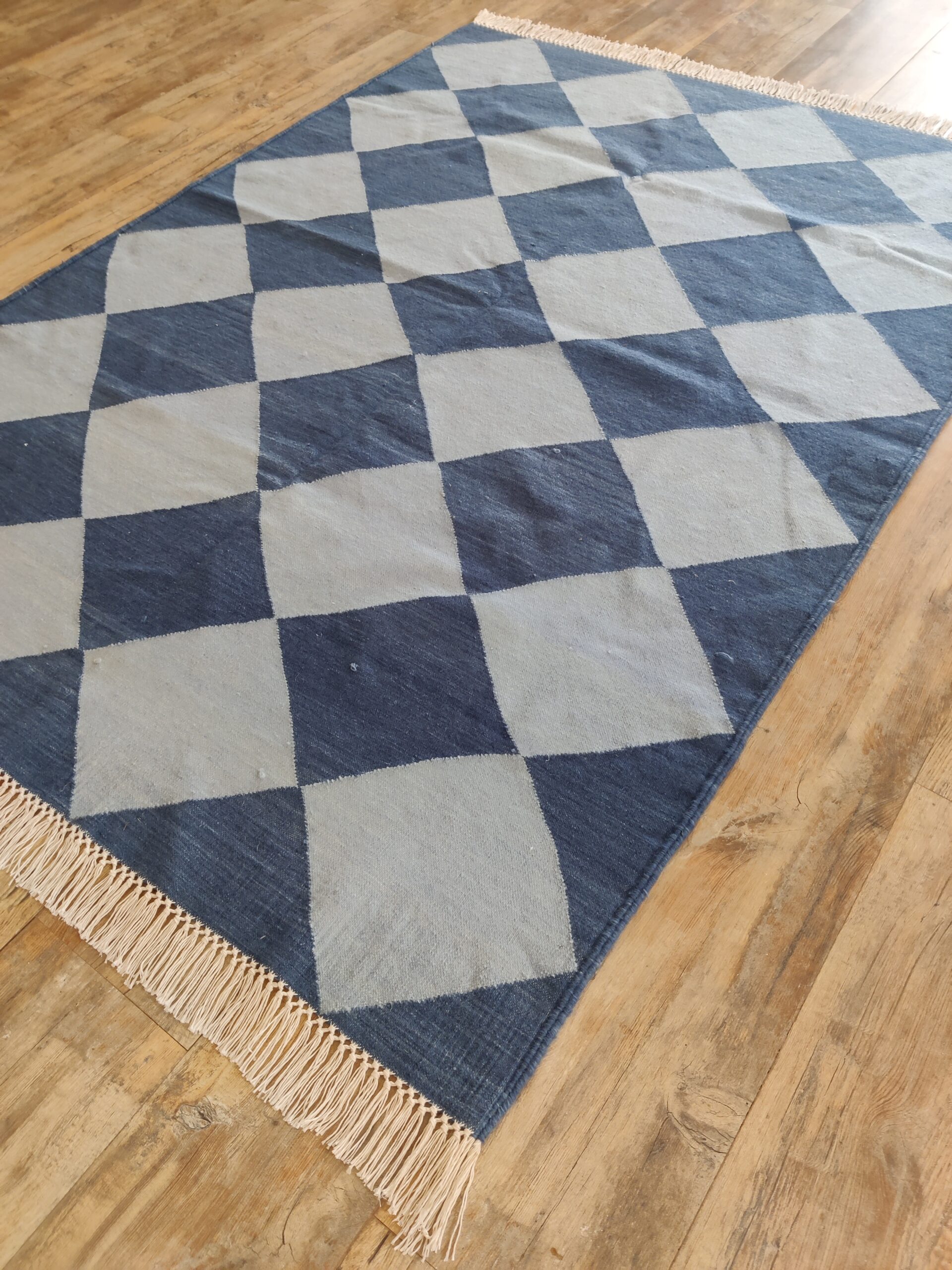 Handwoven Cotton Wool Rug, Home Decor Rug, Custom Size Wool Rug, Check Diamond Pattern Rug