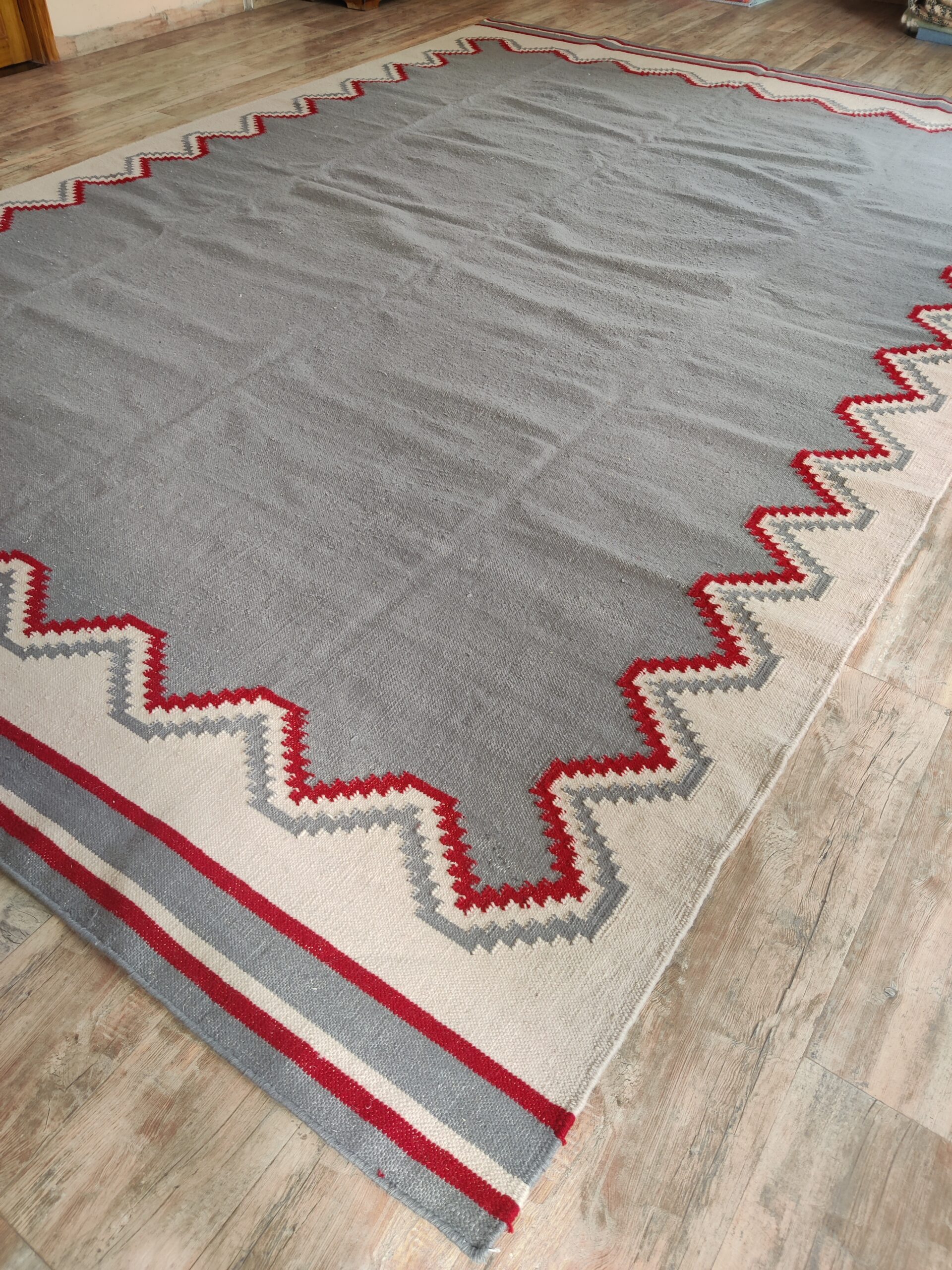 Handwoven Cotton Wool Kilim Rug: Boho Tribal Geometric Decor