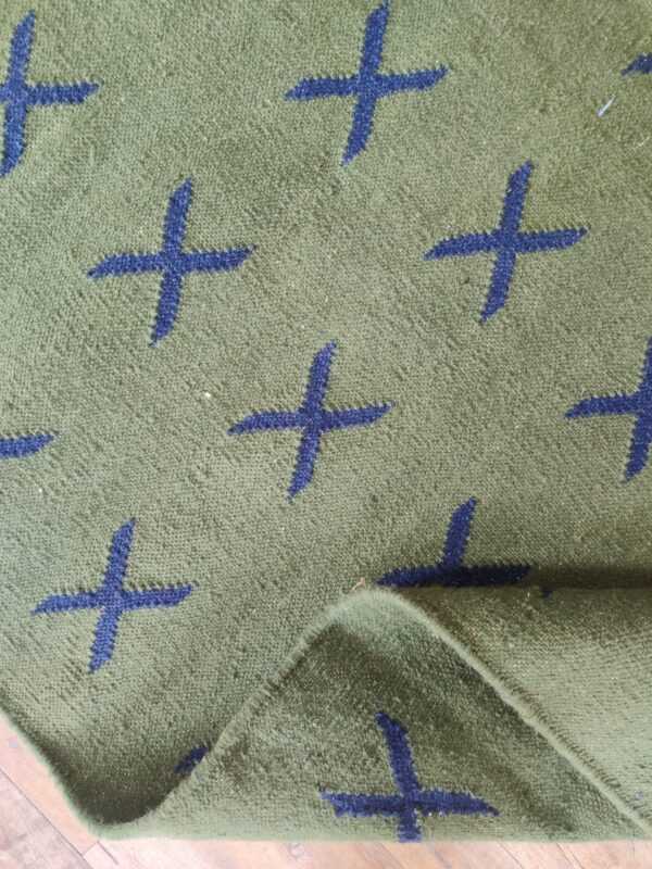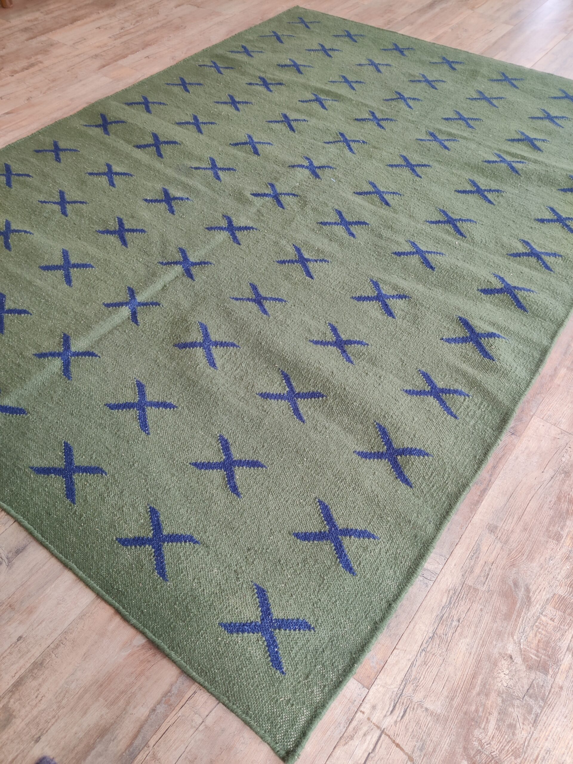 Handwoven Cotton Wool Green And Blue Rug, Living Room Rug, Bedroom, Floor Rug Runner