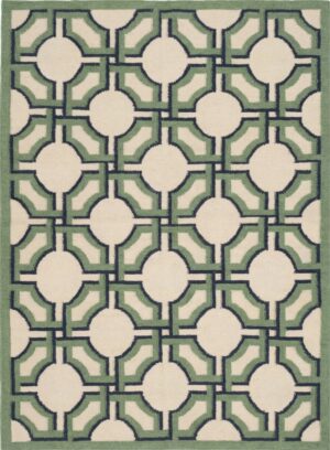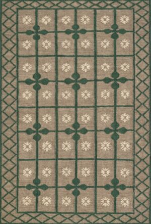 Handwoven Wool Area Rug: Green Beige Geometric Floral, 8×10 Modern Rug