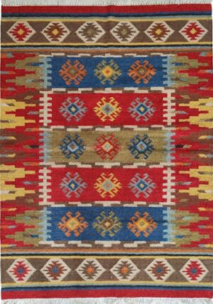 Handwoven Wool Geometric Rug: Multicolor Flatweave, 6×9