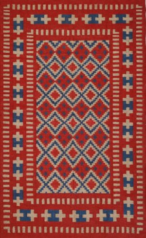 Handwoven Wool Blend Dhurrie Rug: Blue Brown Geometric Boho Decor Rug, Flatweave Wool Rug