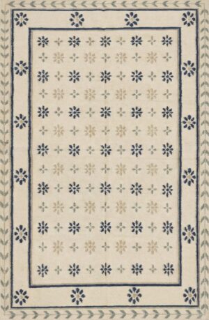 Handwoven Wool Area Rug: Scandinavian Floral Dhurrie, 8×10