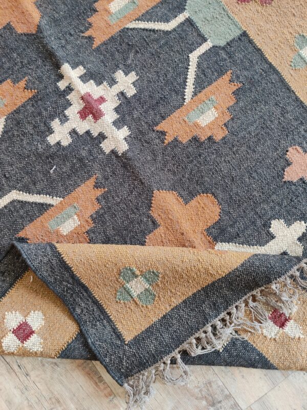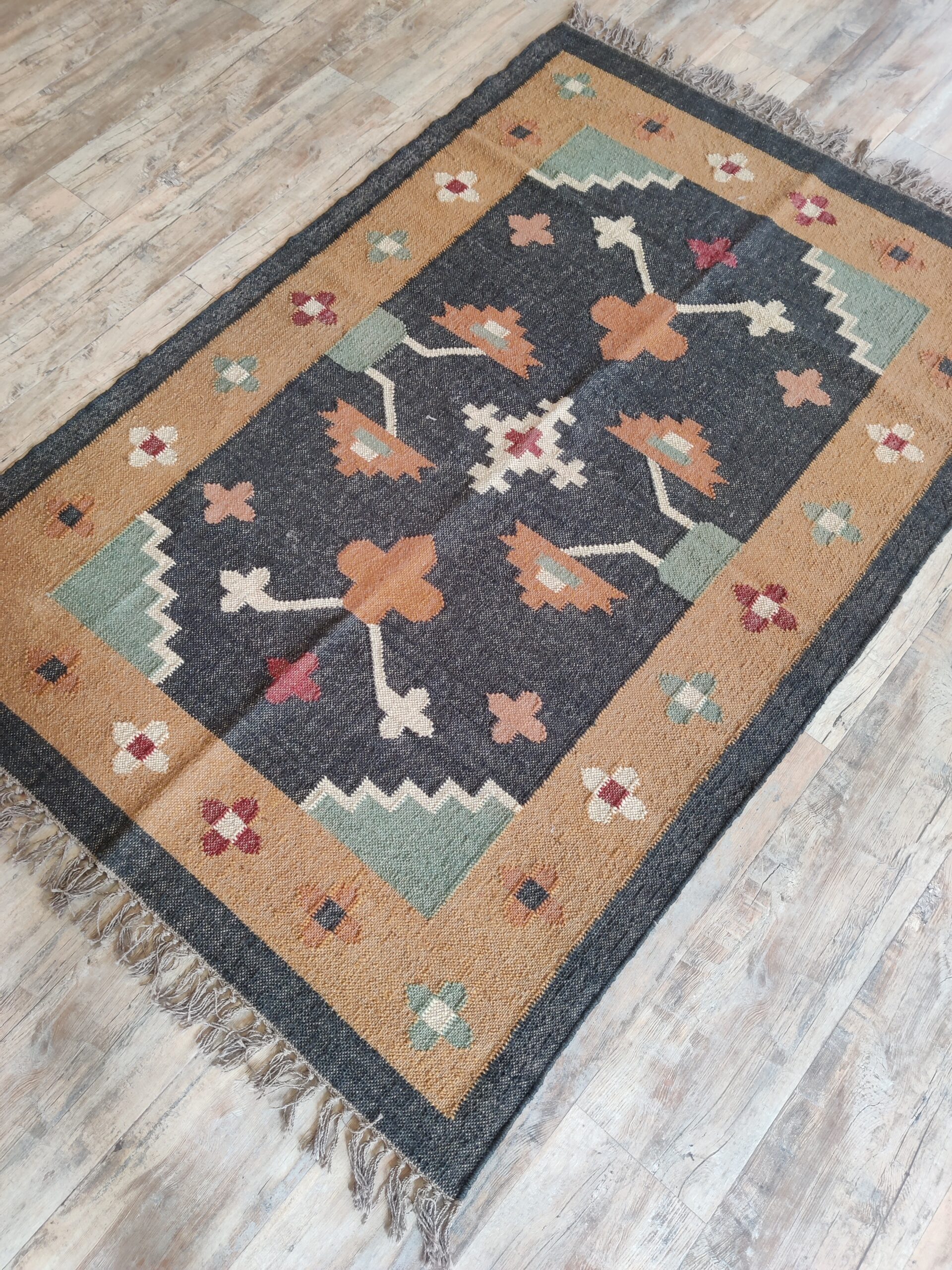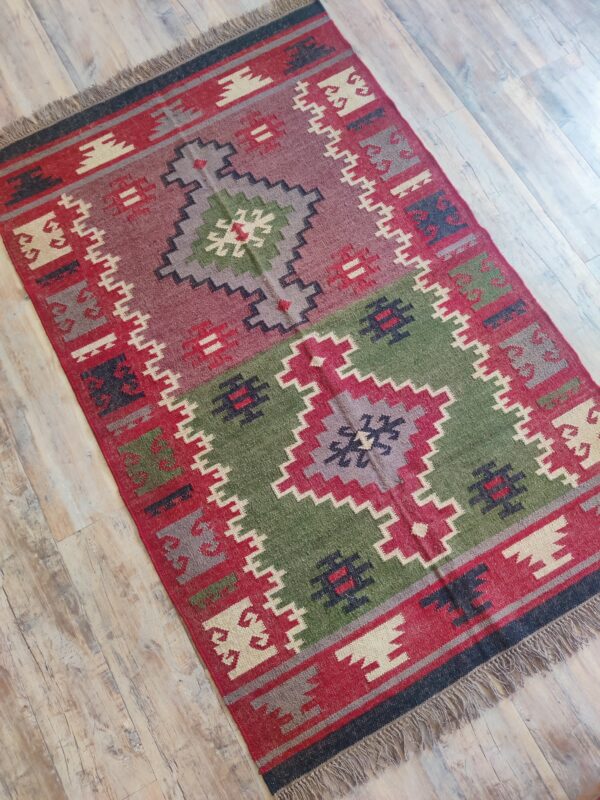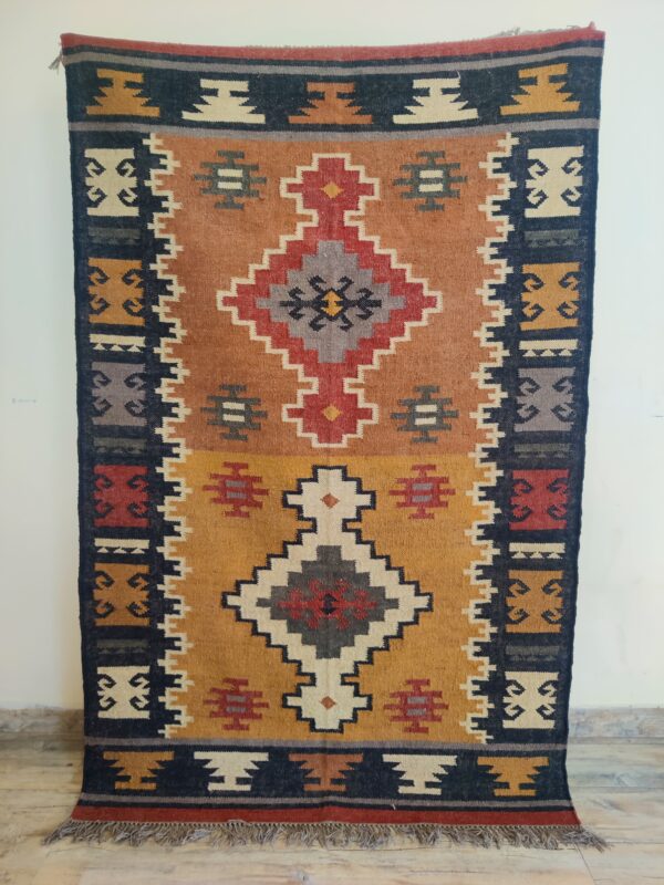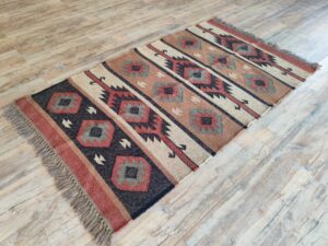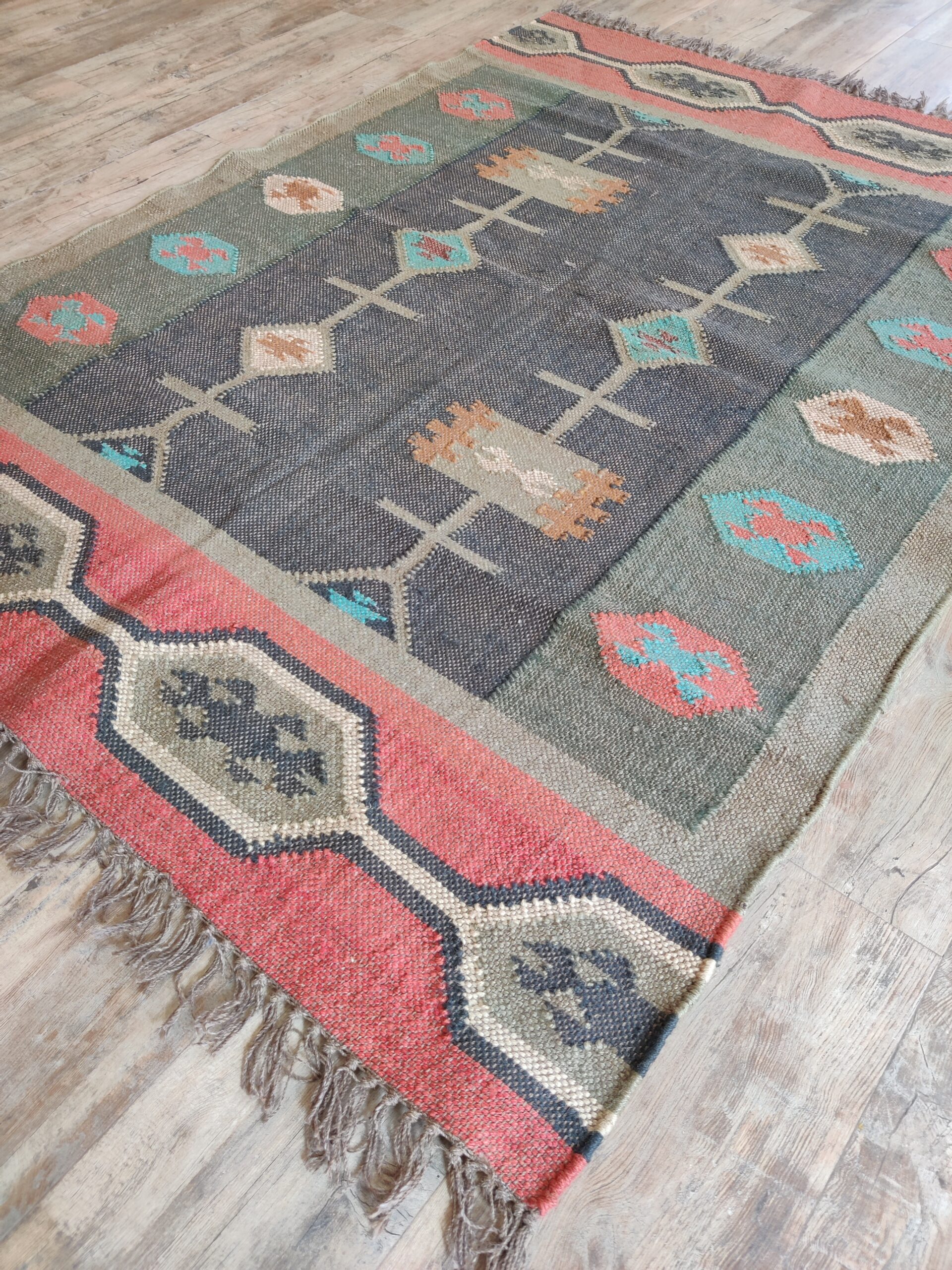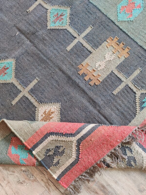 Handwoven Unique Design Wool Jute Kilim Rug, Home Decor Rug