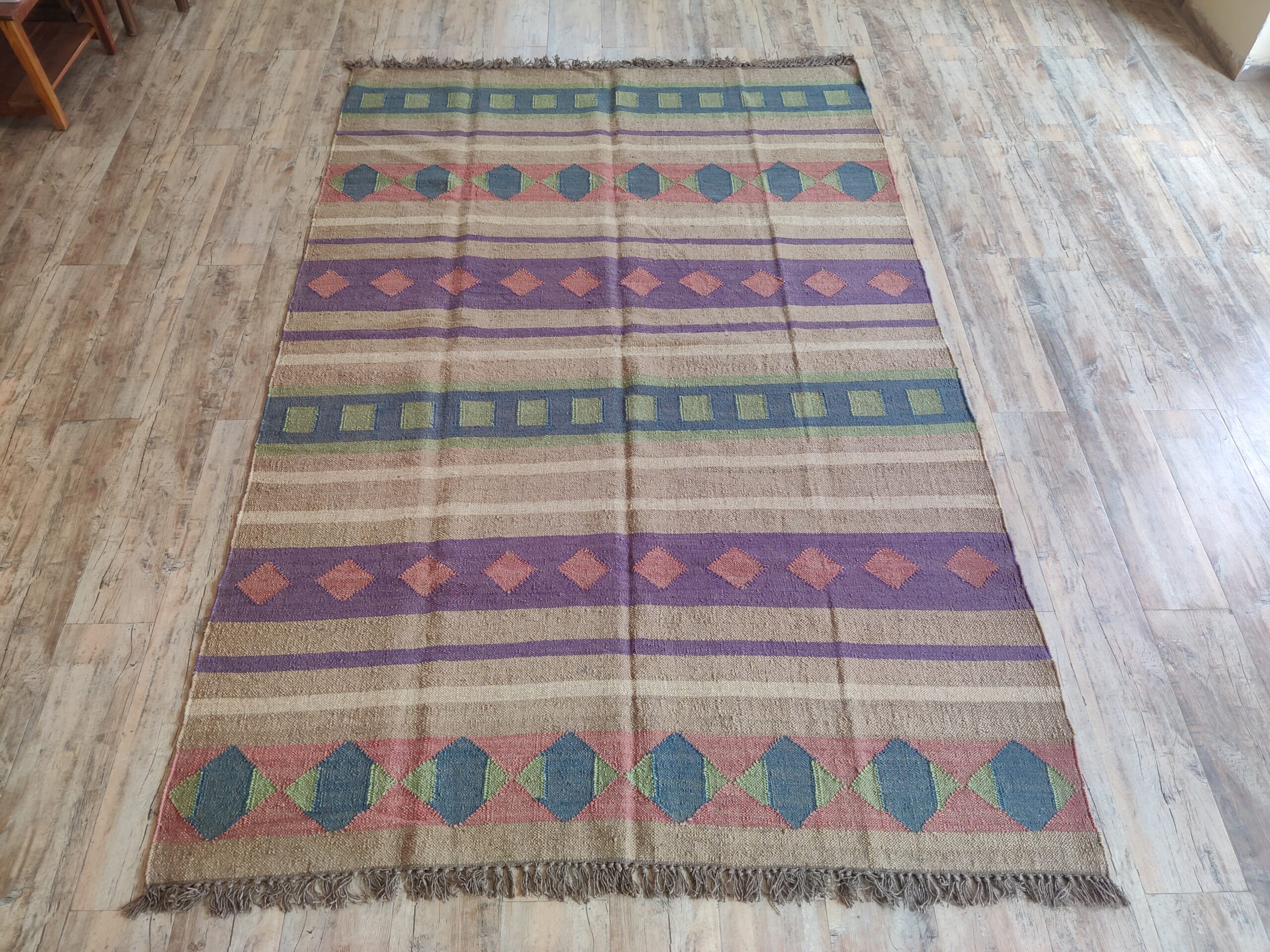Handwoven Wool Jute Rug, Traditional Vintage Rug, Reversible Rug, Hopme And Living Room Rug