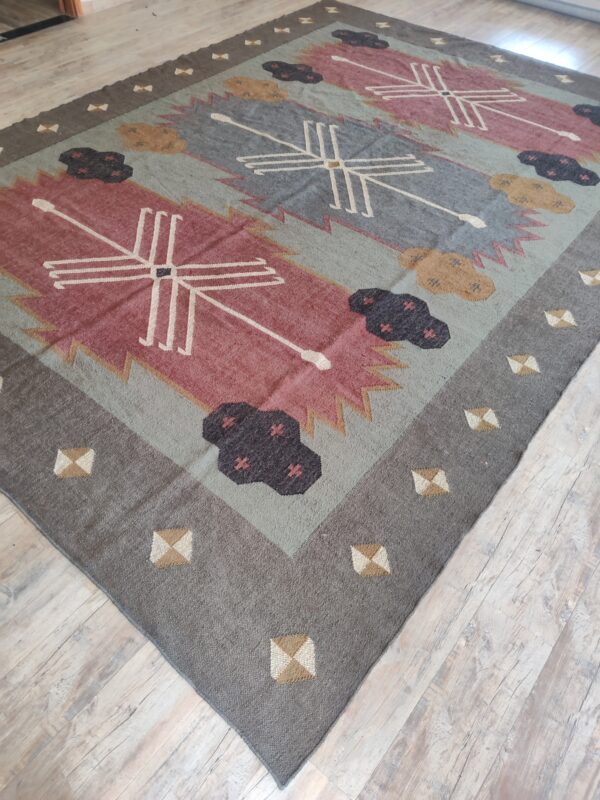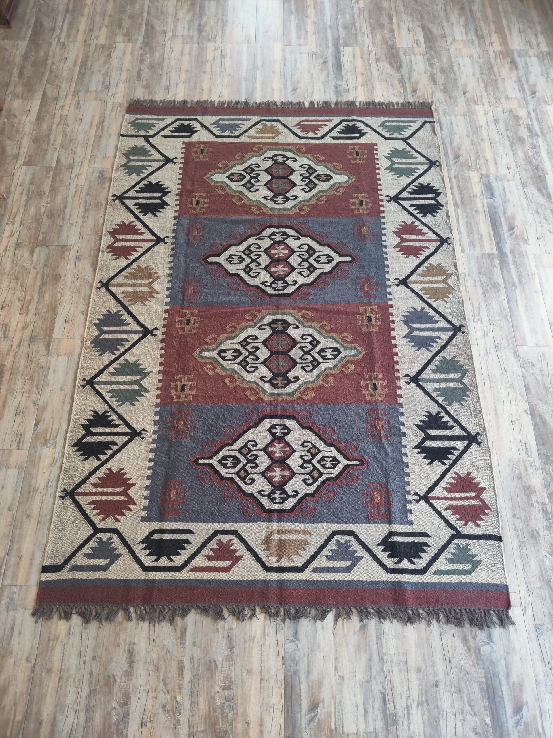 Handwoven Wool Jute Rug: Boho Geometric Tribal Design