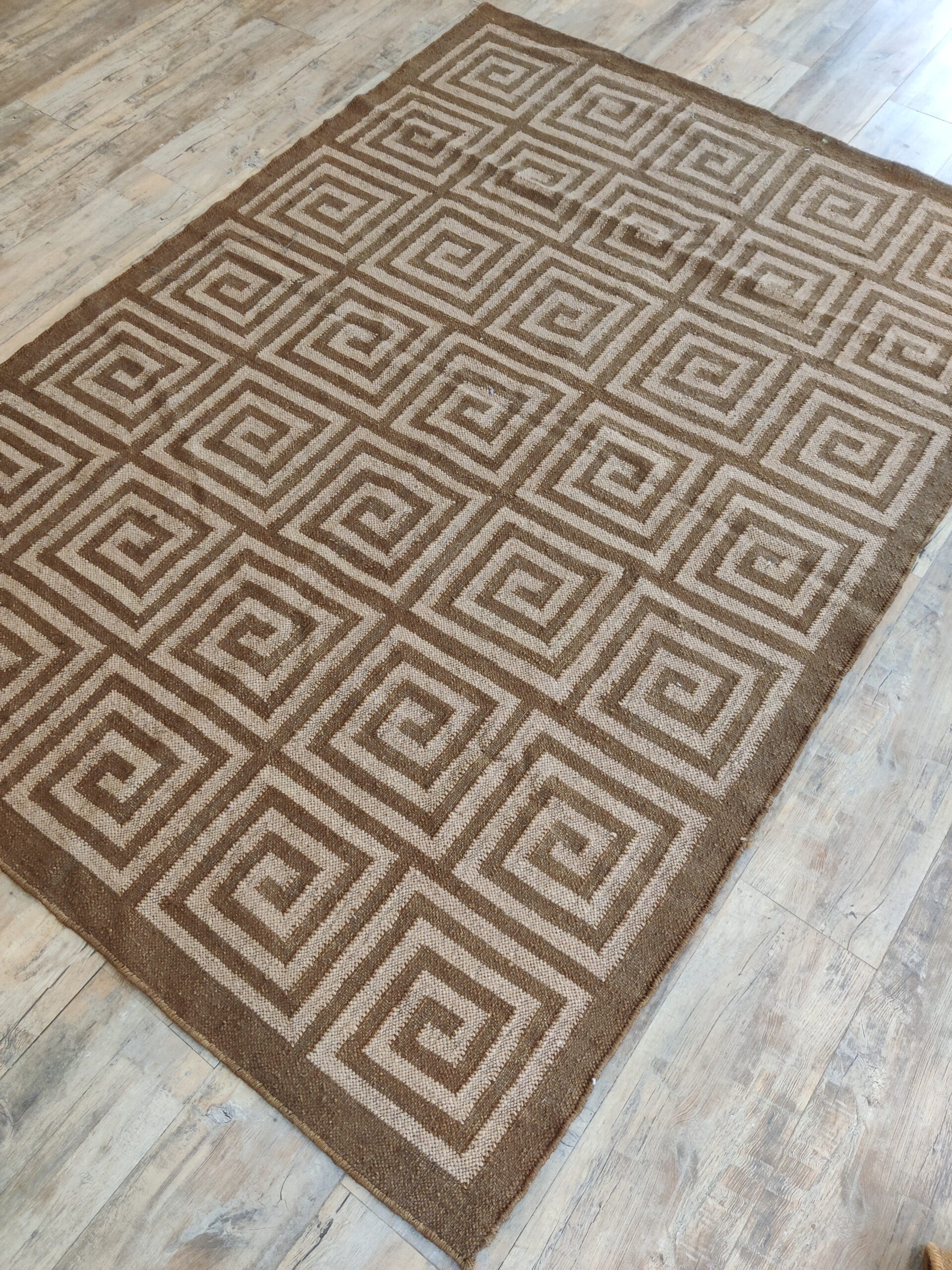 Handwoven Wool Jute Rug, Jute Kilim Geometric Rug, White And Rust Jute Rug, Living Room Rug