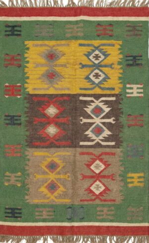 Home And Living Room Wool Jute Rug, Modern Geometric Multicolor Jute Kilim Rug