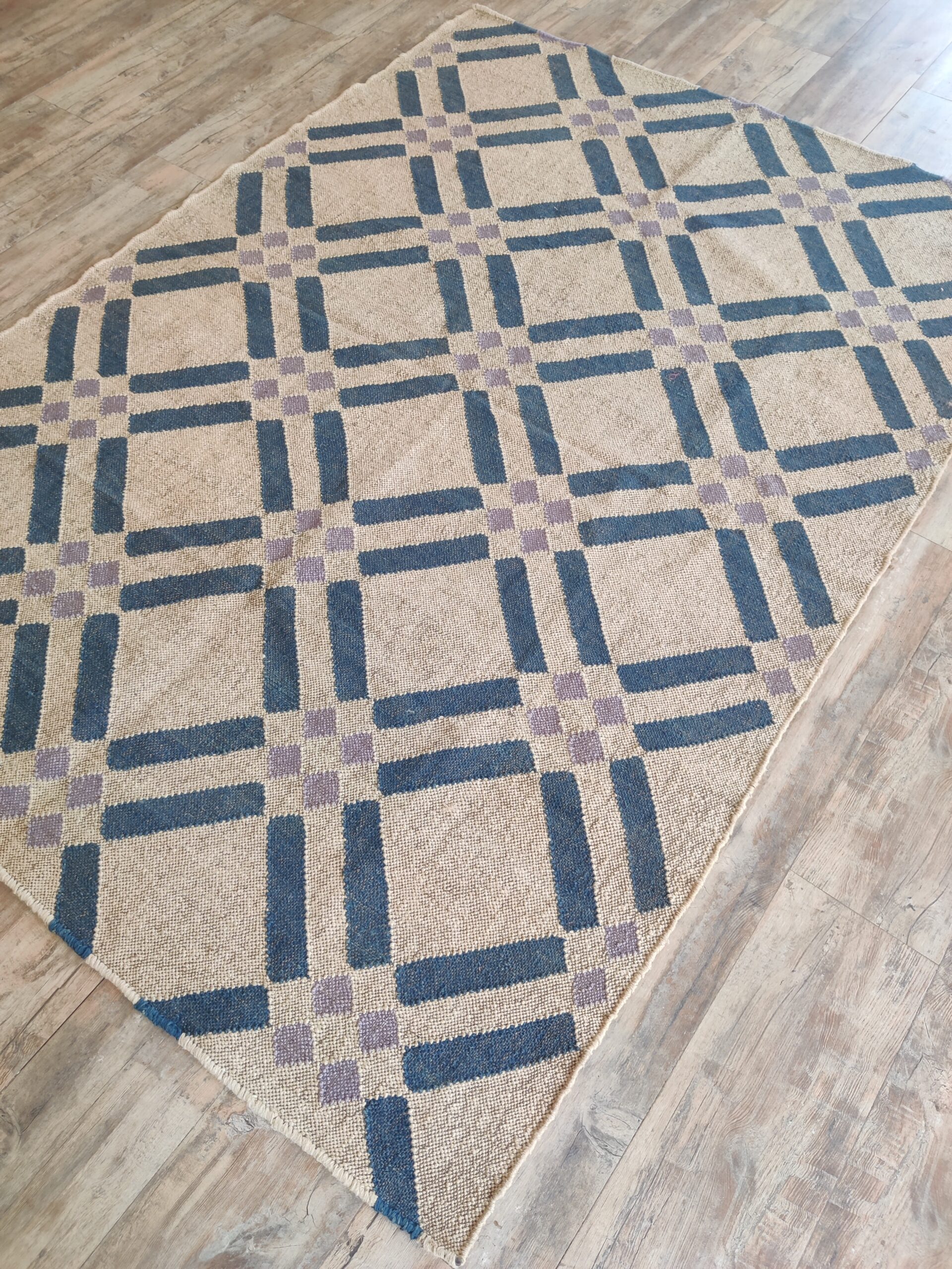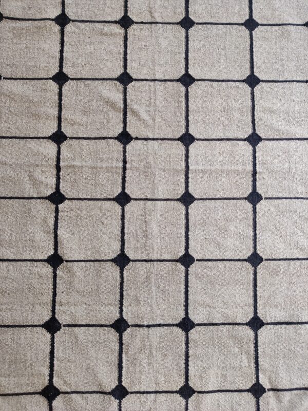 Home And Living Room Cotton Jute Rug, Home Decor Checkered Rug, Beige And Black Rug