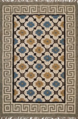 Modern Floral Wool Kilim Home And Living Room Rug, Blue And Yellow Geometric Pattern Rug