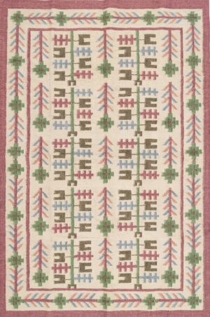 Modern Floral Flat-Weave Wool Rug: Tribal Geometric Design Rug, Traditional Area Rug, Wool Rug