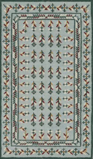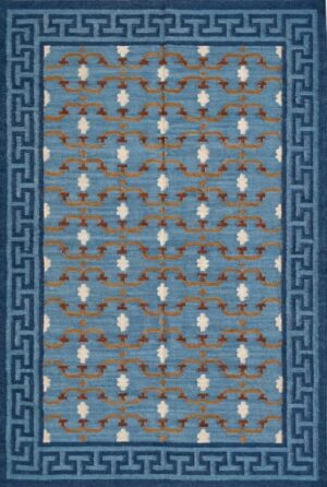 Modern Floral Flat-Weave Wool Rug: Blue Geometric Design Rug, Traditional Rug, Bespoke Size Rug