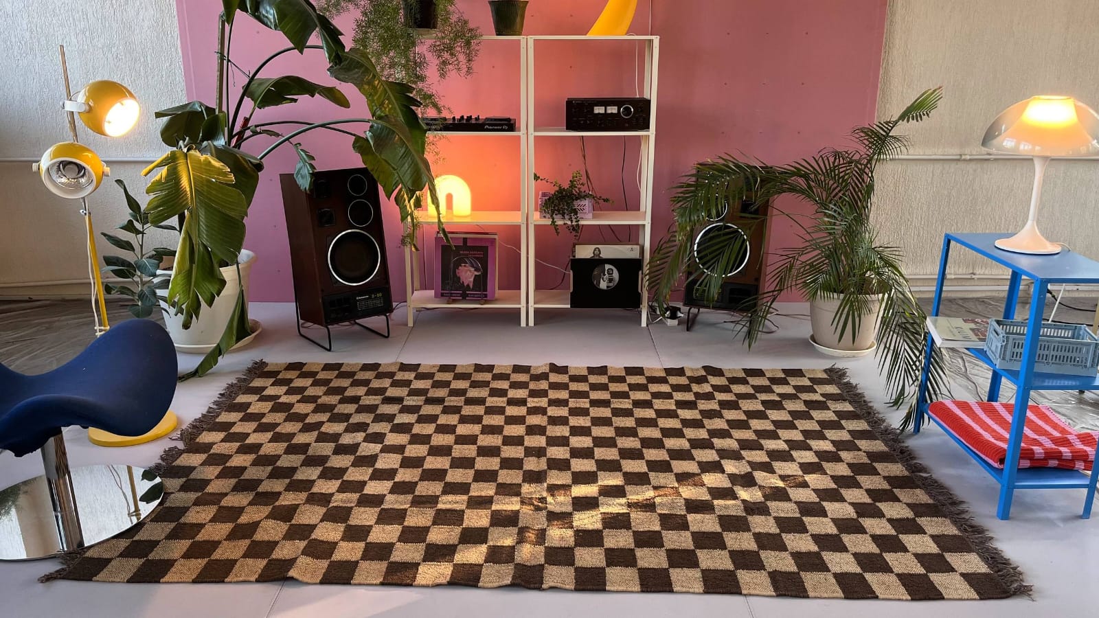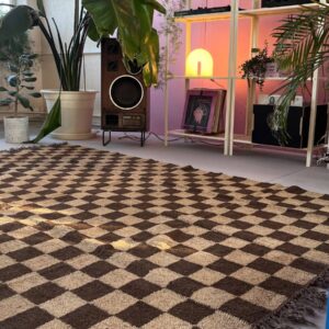 White And Purple Cotton Wool Moroccan Checkered Rug