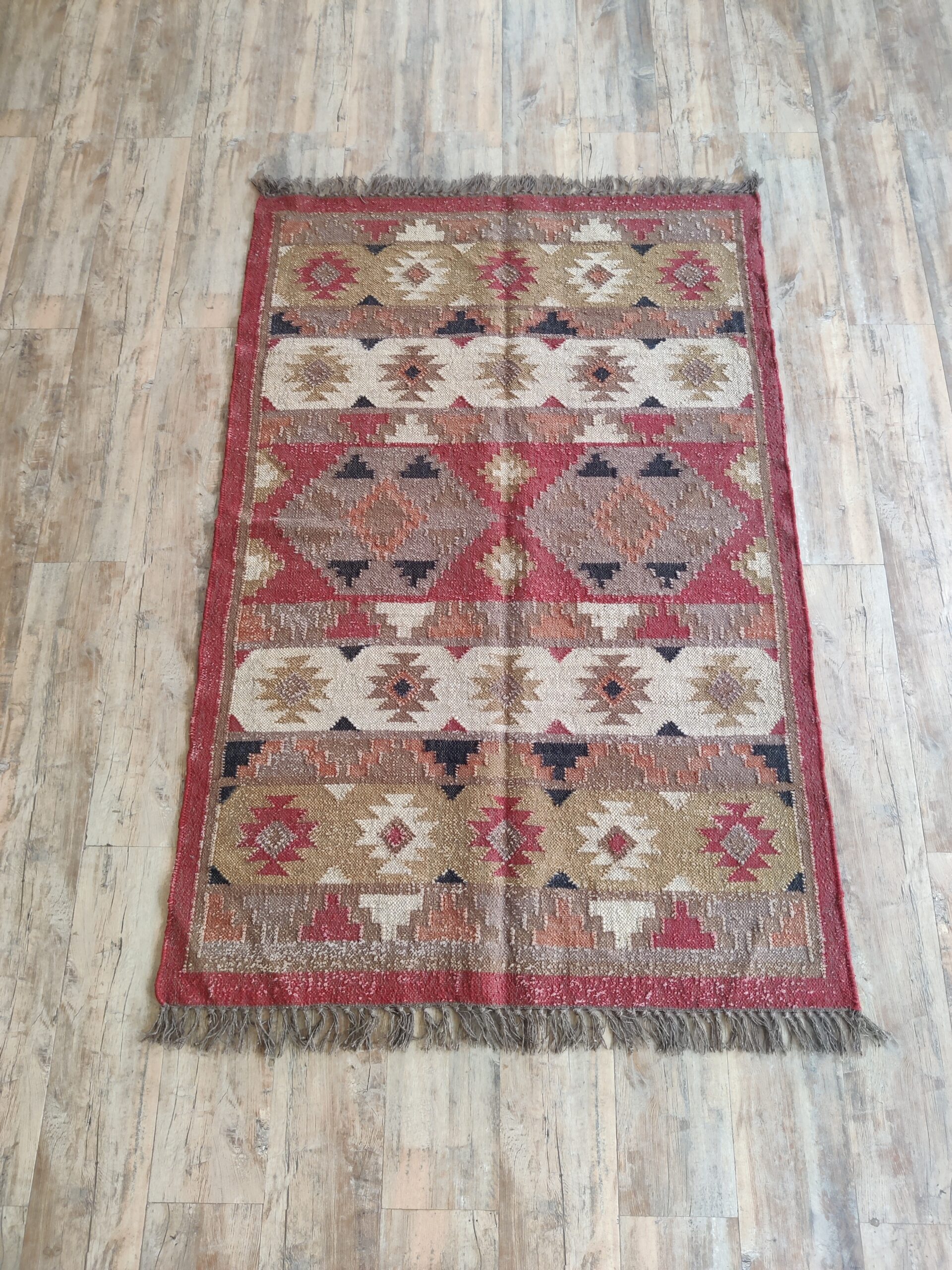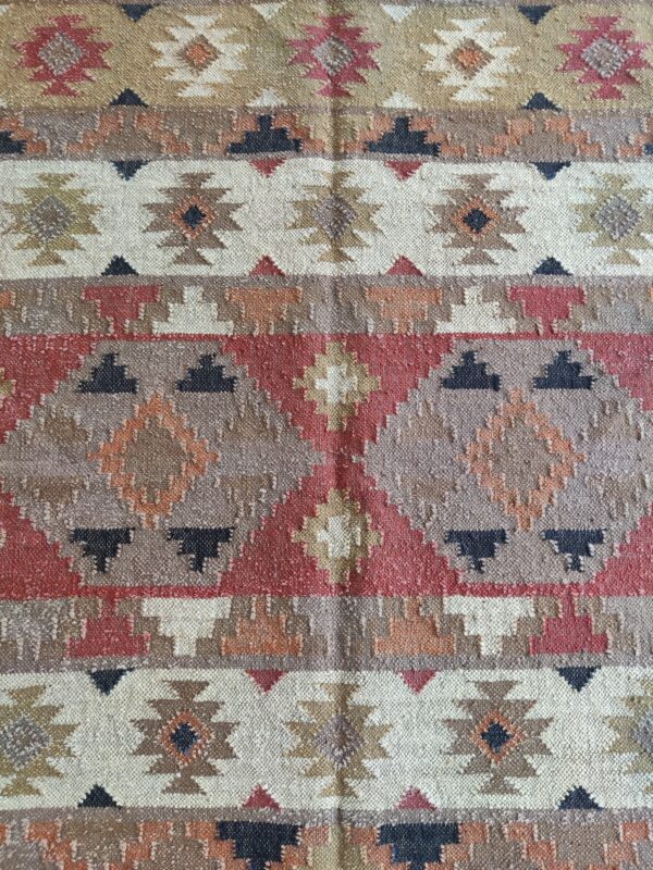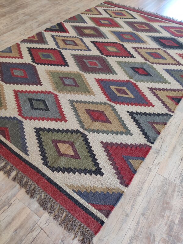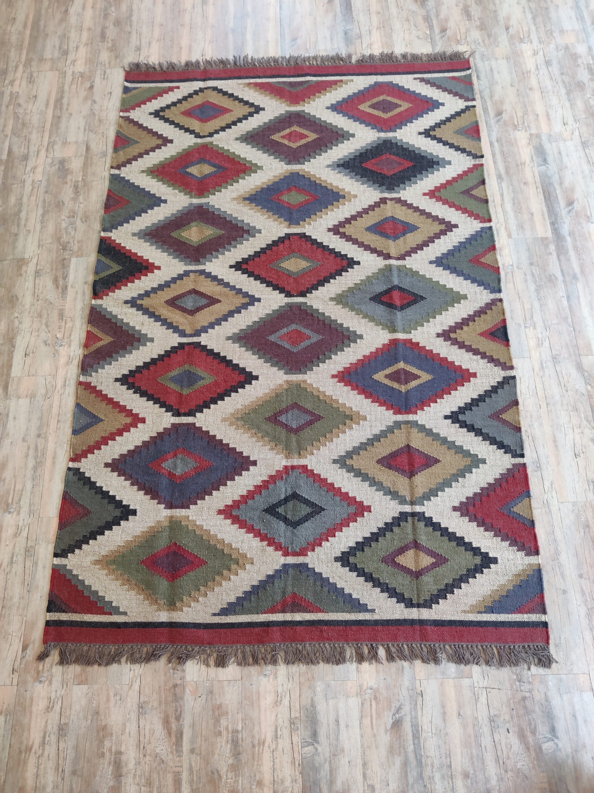 Modern Geometric Wool Jute Rug, Home And Living Room Rug Traditional Colorful Wool Jute Rug
