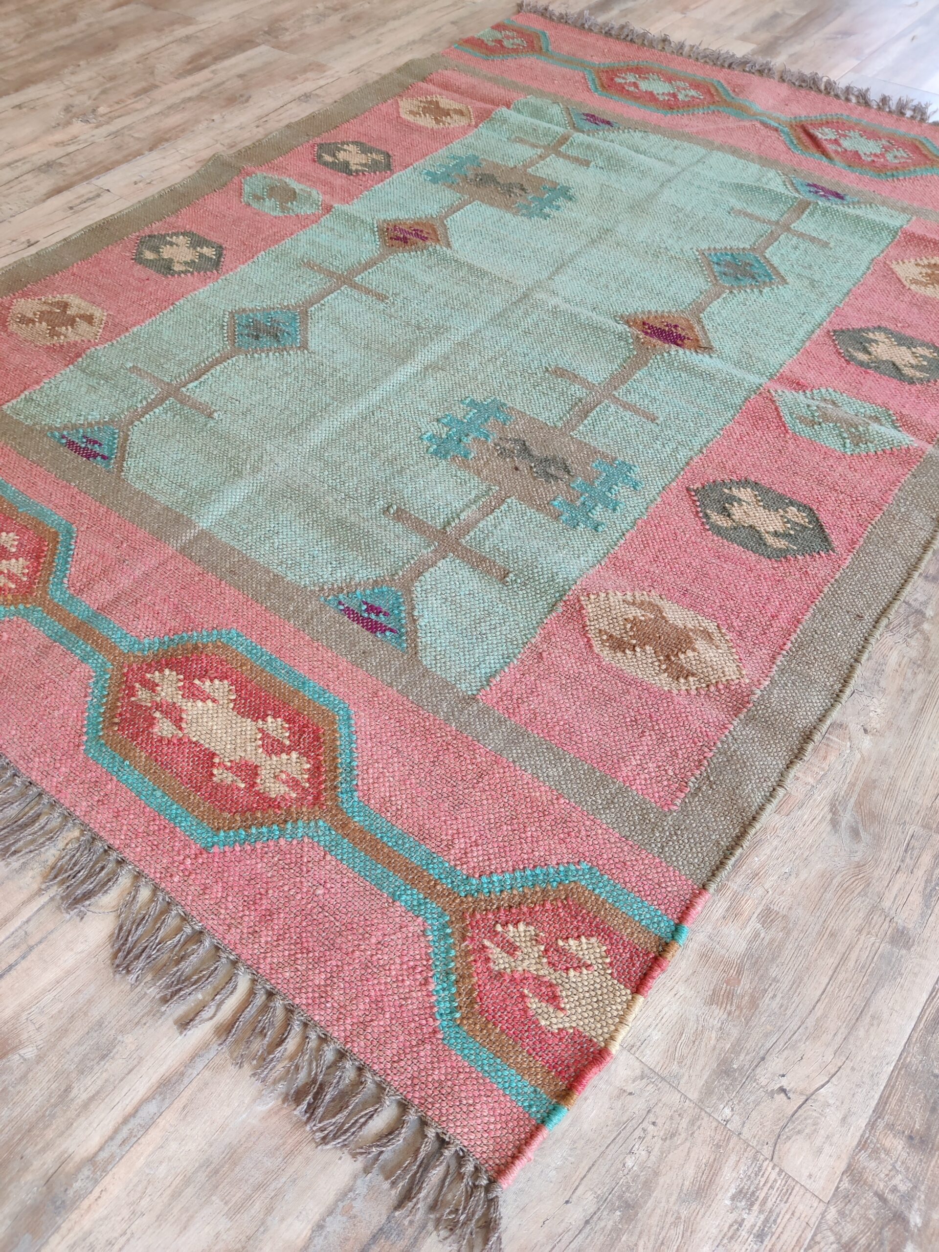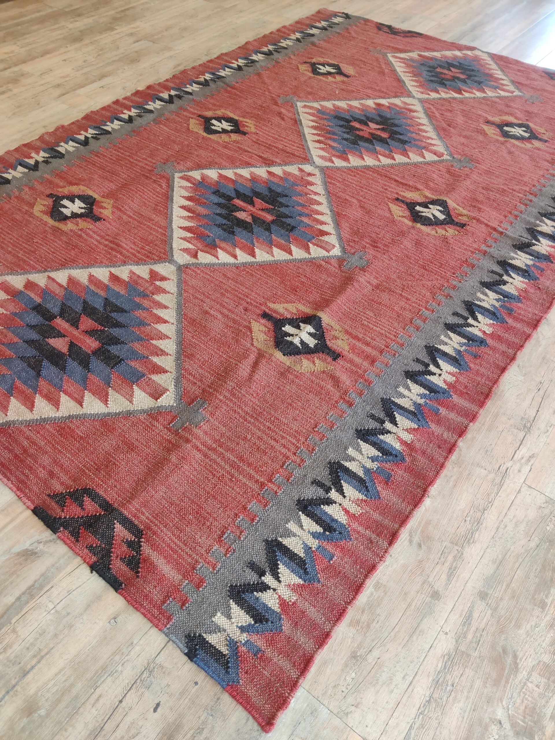 Modern Home Decor Living Room Rug, Geometric Pattern Rug, Wool Kilim Rug
